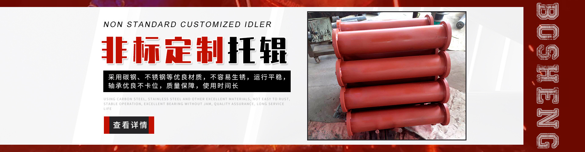 泰安博晟礦山機(jī)械有限公司位于山東泰安新泰市汶南鎮(zhèn)陳糧村。緊鄰京滬、京福、萊新高速公路。公路交通極為方便,環(huán)境優(yōu)美。公司主要生產(chǎn):托輥、托輥配件、托輥支架等皮帶輸送機(jī)配件。歡迎各界商友前來洽談考察。聯(lián)系電話:13954880316. 泰安博晟礦山機(jī)械有限公司采用國際標(biāo)準(zhǔn)設(shè)計(jì)、制造技術(shù),將托輥的設(shè)計(jì)和制造提高到了一個(gè)更高的水平,生產(chǎn)的托輥具有小的旋轉(zhuǎn)阻力,長的壽命,小的維修工作量和高的承載能力。鋼管采用托輥專用高頻焊管,管內(nèi)做去刺處理,圓度控制在特殊的公差范圍之內(nèi)。軸是按標(biāo)準(zhǔn)公差加工的冷拉鋼制造。軸承座采用進(jìn)口冷扎鋼板經(jīng)多次工藝沖壓而成。托輥管和軸承座被自動(dòng)焊接機(jī)械手焊接在一起,形成一個(gè)具有很高強(qiáng)度的整體構(gòu)造。托輥軸承采用國內(nèi)外知名品牌的大游隙深溝球雙密封軸承,使托輥具有理想的靜平衡和動(dòng)平衡,其旋轉(zhuǎn)阻力優(yōu)于國標(biāo)。托輥密封采用綜合國外和國內(nèi)迷宮式密封的特點(diǎn)進(jìn)行了專門設(shè)計(jì),內(nèi)充耐高速高溫和超低溫抗氧化鋰基酯,有效防止雜質(zhì)、水、空氣對(duì)托輥內(nèi)部的侵蝕。 目前我們托輥系列產(chǎn)品有槽形上調(diào)心托輥組、槽形托輥、槽形下調(diào)心托輥組、承載托輥、緩沖托輥、回程托輥組、螺旋托輥、摩擦上調(diào)心托輥組、平行緩沖托輥組、平行上調(diào)心托輥、礦用托輥、煤礦專用托輥、梳型托輥、樹脂托輥、陶瓷托輥、橡膠托輥、錐形托輥、立輥等。規(guī)格:直徑50-219mm;長度190-2600mm。 泰安博晟礦山機(jī)械有限公司竭誠愿與廣大客戶合作,共同發(fā)展開發(fā)新技術(shù)新項(xiàng)目。泰安博晟礦山機(jī)械有限公司秉承